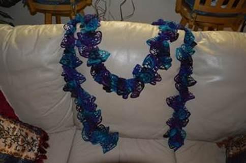 Want to learn how to make this beautiful frilly, scarf? Rachel is offering to set up an evening class in June for anyone who is interested in learning this technique. It is a very easy “no crochet” method using the Sashay yarn by Red Hart. All you need to bring is a skein of yarn (Michael’s has a good variety of colors on sale now), a crochet hook (size J or 10mm), and the willingness to learn. If you are interested in attending, please email Rachel at rachel.doyle@att.net. The scarves would make great Christmas gifts for your friends and family. Besides, it is always fun and exciting to learn something new!