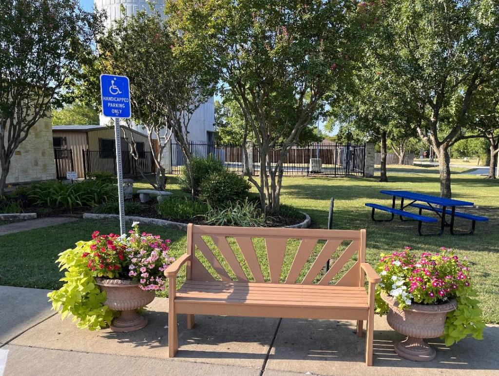 The current Beautification Committee members are Mary Coon-Chair, Donna Moore,Jonie Johnson and Debbie Wood. They hand water planters and urns daily during the hot season, maintain and hand water the Library and Administration Bldg. beds as needed, maintain the Town East beds, and ensure that the town sprinklers are watering the flowers on Town East sufficiently.
