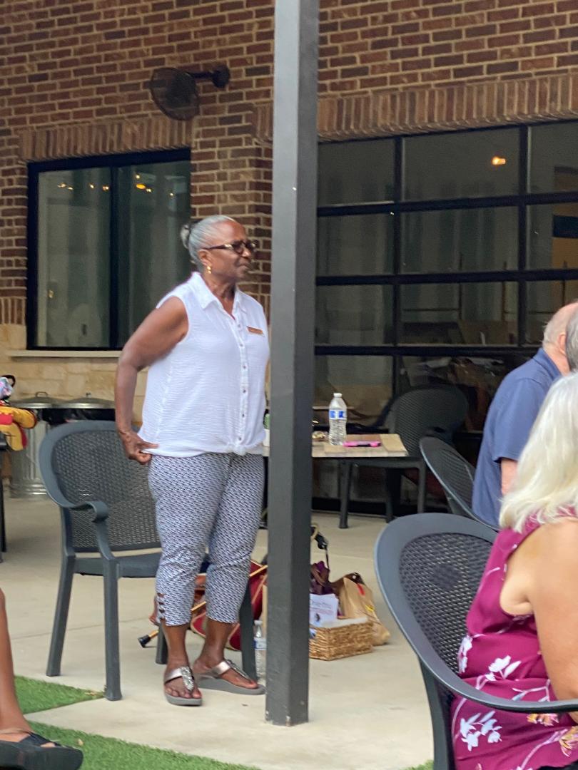 On October 25th, 2021 Jonie, Faye, Jeanette and Mary met with Randy at the center to see the raised beds and pots in the courtyard. The only plants in the raised beds were a Texas Star Hibiscus, two chives, some cannas and some weeds. There were seven barrel pots around the courtyard but two of them were broken down. One of the pots contained irises with only about two inches of dirt. Another pot contained a bamboo plant. There was a water hydrant pump and hose directly behind the raised beds that was leaking quite a bit and the ground was water soaked. We observed that there were many mature trees with large canopies covering the courtyard that would yield mostly shade with some sun at various times of the day. After some discussion with Randy, our planning team decided to throw the two broken pots away, relocate the Hibiscus to a ground level bed, relocate the cannas to the one pot that received the most sunlight, and throw the chives out. Randy made plans to contact his landscape workers to relocate the Hibiscus and cannas, remove chives and weeds from the raised beds, and contact a repairman to fix the leaking water hydrant pump, all at his cost. We asked Randy to invite residents to help us plant the pansies and for his residents and employees to be responsible for watering the plants. We offered to come back in the spring and fall to check on the plants and trim as needed. We planned to complete the project before November 22nd, and our budget was $500.
