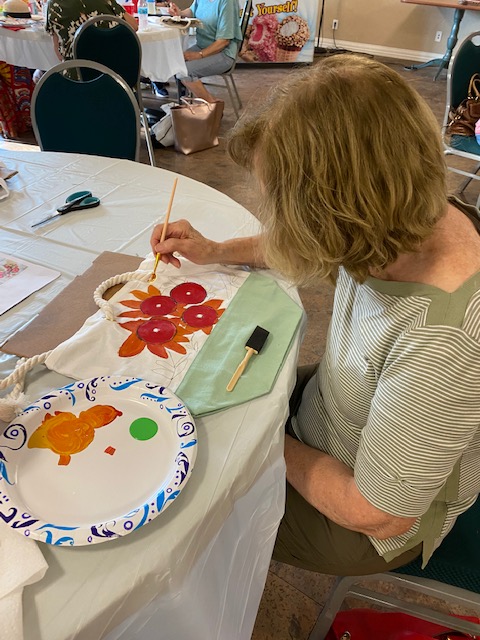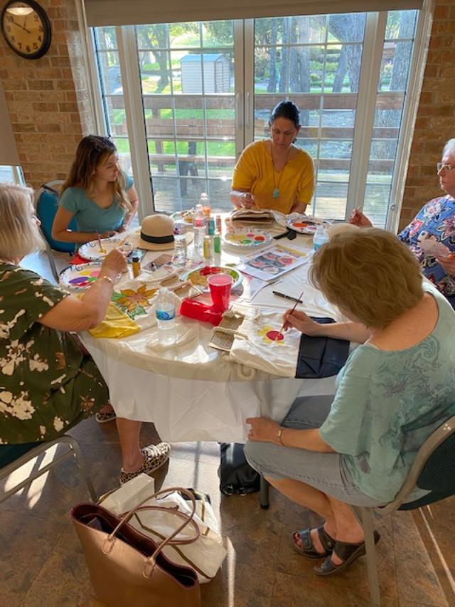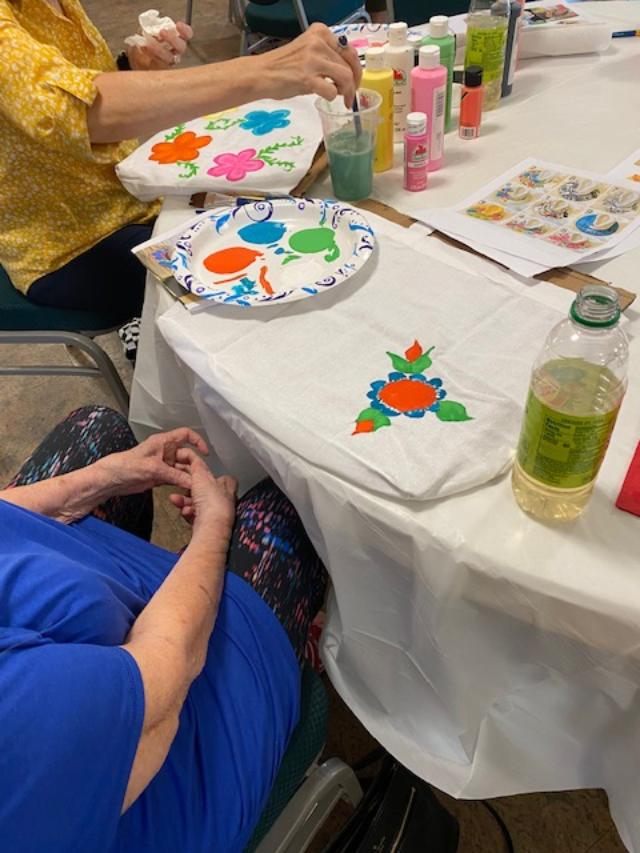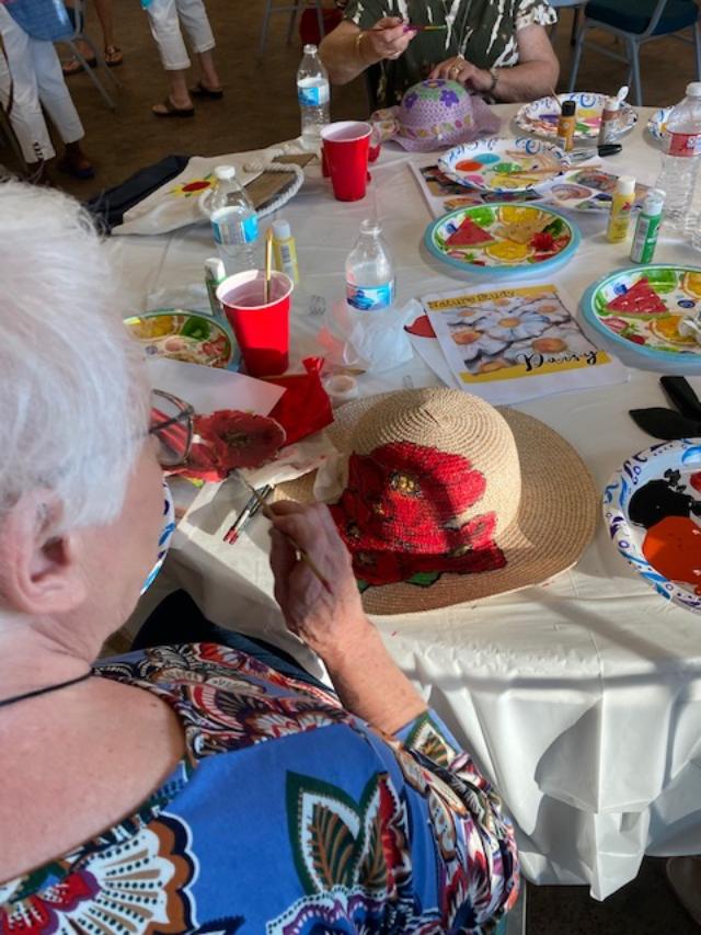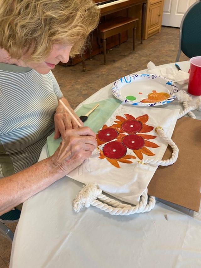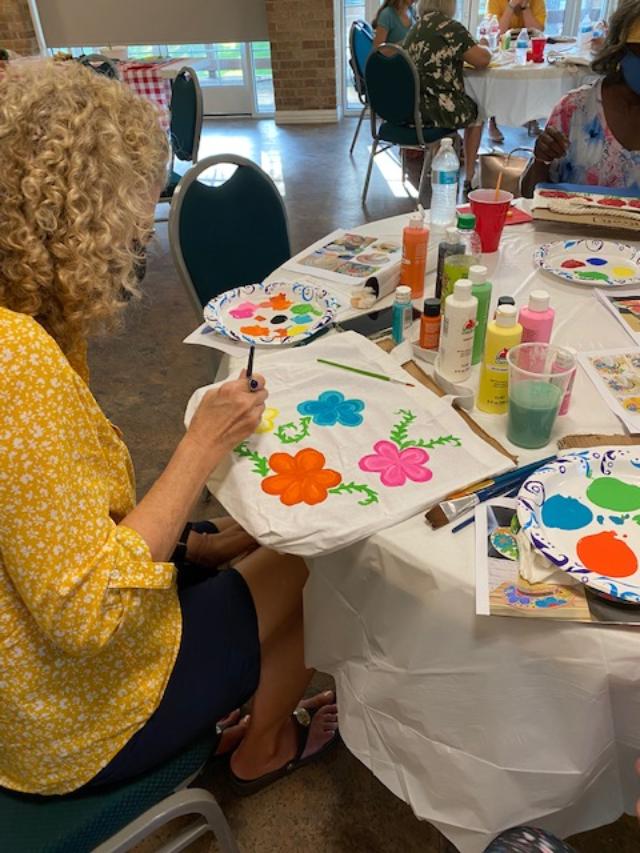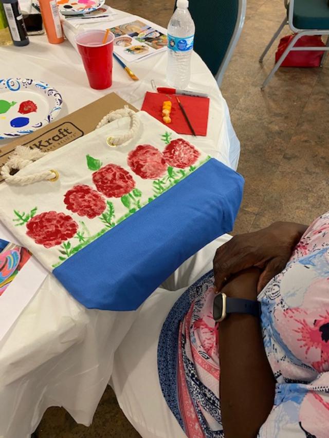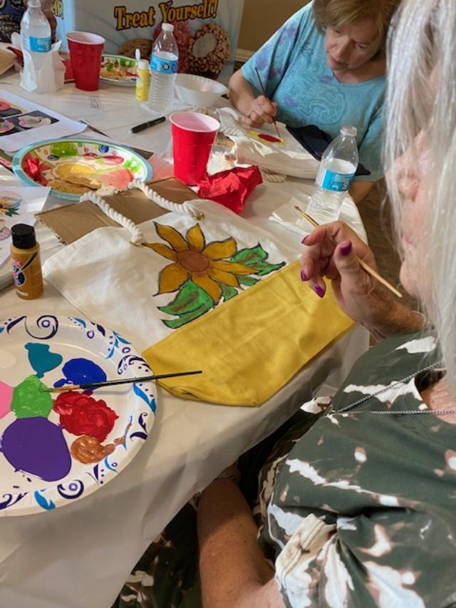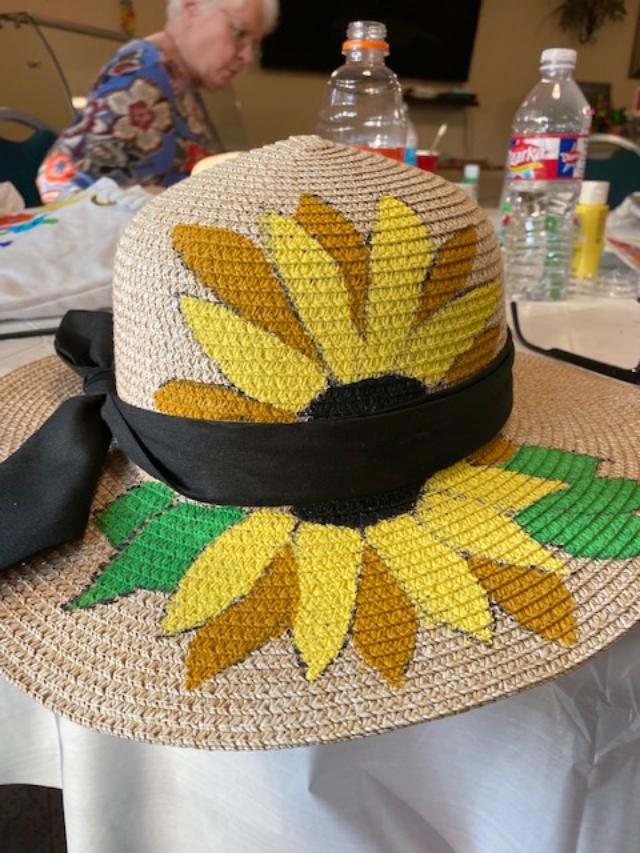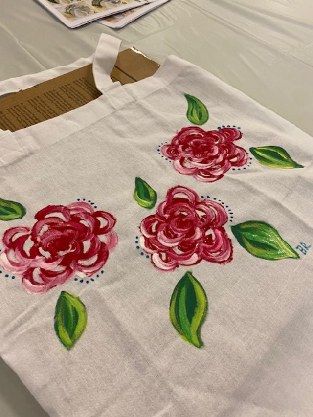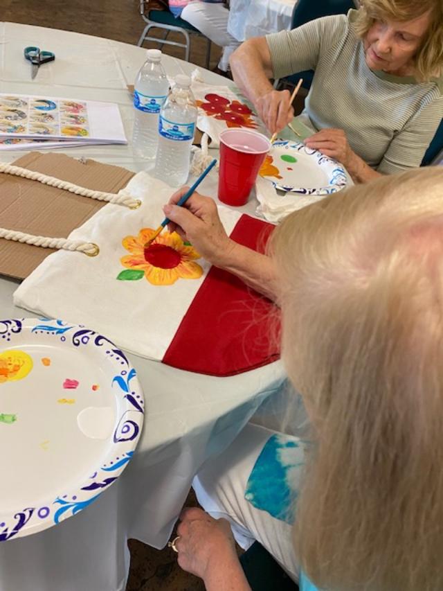 Our last project was painting hats or tote bags with acrylic paint. Each one decided what flower they wanted to paint. Overall it was very successful.