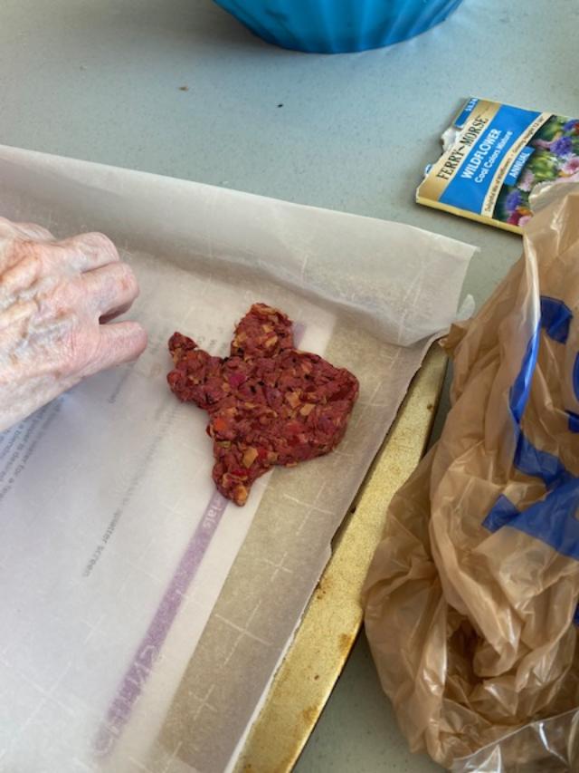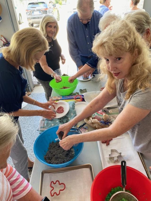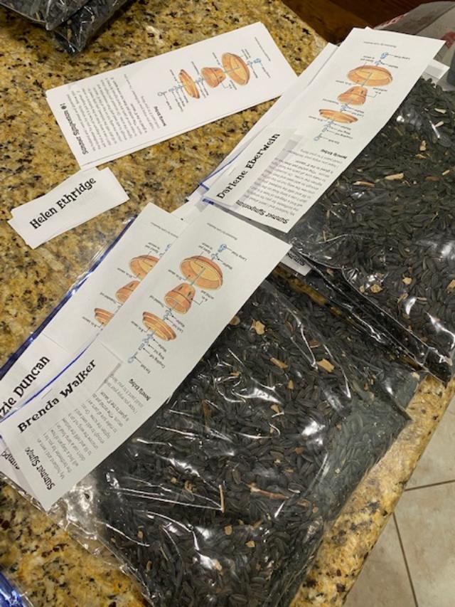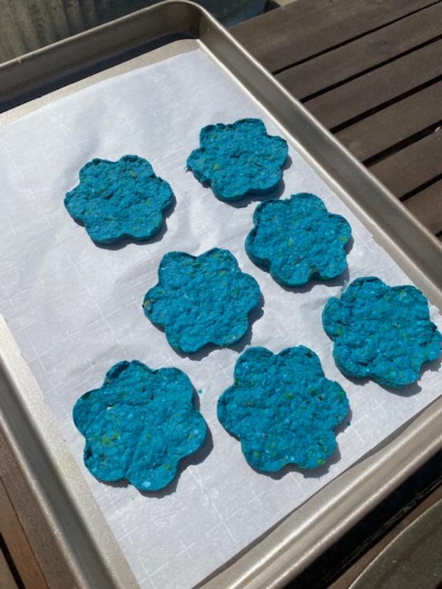 Our second project was making “seed paper” from shredded papers. The paper was soaked in water to soften, seeds were added, the pulp was formed in cookie cutters and set to dry. The “paper” can be thrown in to your garden or a field and nature will take its course. Beverly Richey