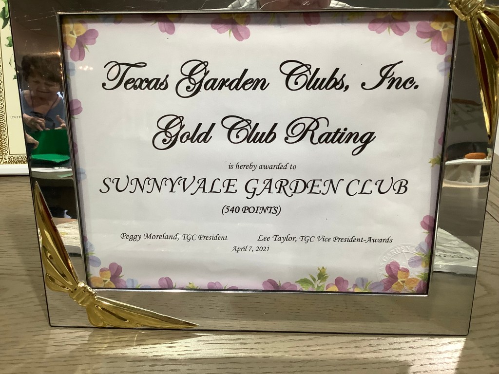 We received many awards. These include Gold for President’s Report, first in TGC Community Service, first in Yearbook, and gold Club status overall. Many thanks to Tameka for handling all the submissions involved.